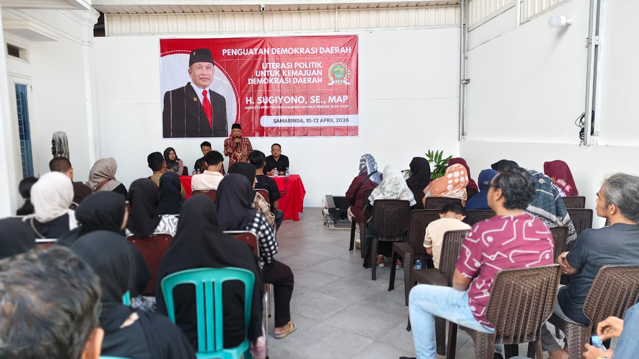 Anggota DPRD Kalimantan Timur, Sugiyono, melaksanakan kegiatan Penguatan Demokrasi Daerah di Kampung Jawa Samarinda, Sabtu (11/04/2026).